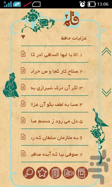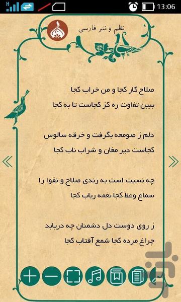• قابلیت انتخاب و پخش موسیقی پس زمینه برای همه متون و اشعار