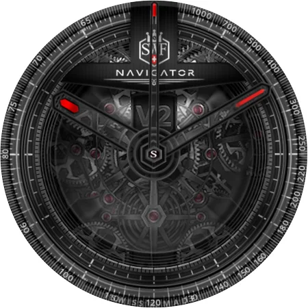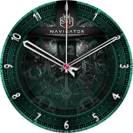 The SWF Navigator V2 Classic analog watch face PRO Series impresses with a detailed animated clockwork and allows you to create thousands of different combinations by freely combining border, bezel, lines, numerals, hands and colors. The PRO Series allows you to configure up to 8 custom apps on your watch face.