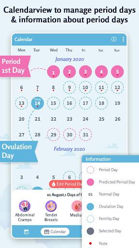 - Reliable to calculate every period date, you can even change settings of Period length, period cycle length and luteal phase.