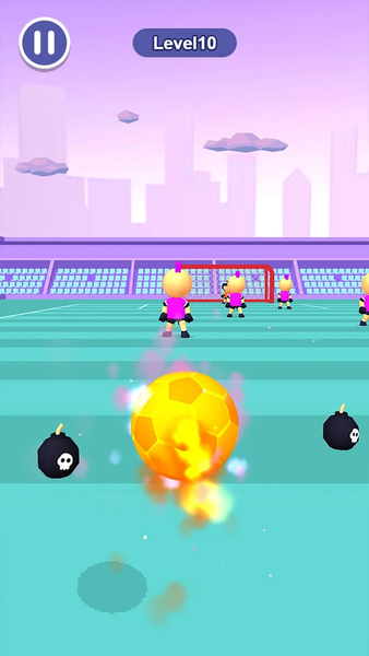 Players will play as a talented football player and showcase their shooting skills in exciting game scenes. Click on the screen to initiate a powerful shot, and then use sliding to precisely control the flight trajectory of the football, cleverly avoiding various obstacles and interceptions from opposing players along the way. During the process of flying towards the goal, various props scattered in the air can be collected, such as accelerating rockets to increase speed, shields to protect against collisions, etc. Each prop can add unique assistance to your shooting journey. Successfully avoiding all obstacles and steadily sending the ball into the net can win the game and experience the feeling of becoming a football hero!
