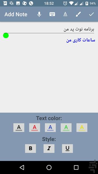 یک دفترچه یادداشت ساده و روان برای نت برداری روزانه و ذخیره متن های مهم شما در گجت اندرویدی شما .با قابلیت های زیر