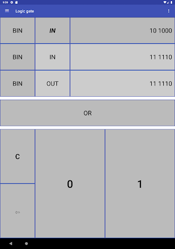 • Logic gates with binary, octal, decimal, and hexadecimal numbers. The logic gates are AND, NAND, OR, XOR, and NOR. For each number system a specific keyboard is used, which makes it very easy and fast to use. The values can be copied/paste.