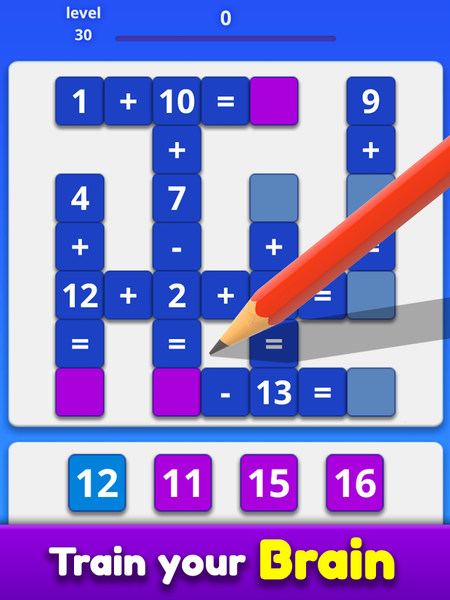 Math Match is a fun number matching game where you need to solve cross math puzzles and riddles to complete the level.