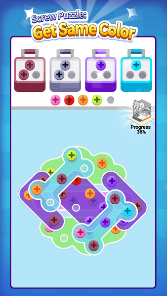 - Fill each screw box with the same color screws, you need to fill all of them to win.
