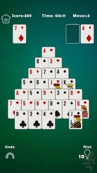 برای نمره، تعداد کارت های باقیمانده رو به بالا را در هرم شمارش کنید. نمره کامل صفر است، جایی که همه کارتها به بنیاد همسان شده اند.