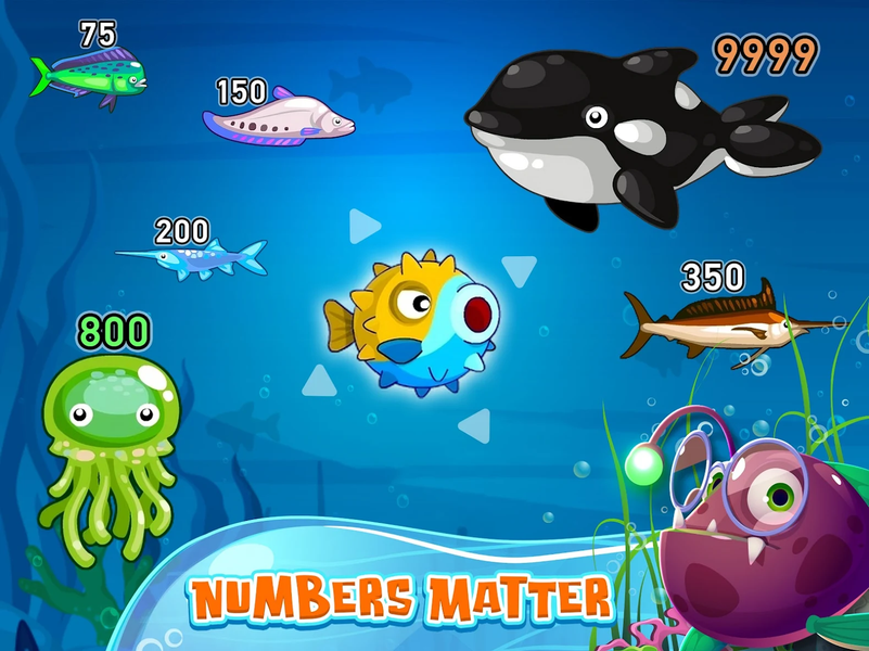 * Try to hunt smaller fishes which are specified with their numbers and try to reach the biggest size. Watch out for the dangers. Like a bomb, a monster fish...