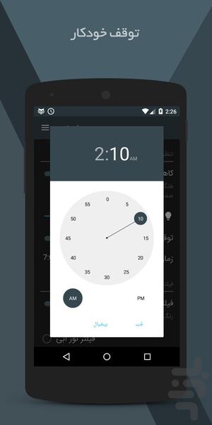 این برنامه پوششی مجازی روی صفحه دستگاه شما قرار می دهد و باعث جلوگیری از رسیدن نور های مضر به چشمانتان می شود. همچنین قابلیت فیلتر نور های رنگی از جمله نور آبی را داراست. نور آبی رنگ باعث خستگی چشم، سردرد و کم خوابی می شود که این برنامه با فیلتر کردن این نور، این مشکلات را رفع می نماید.