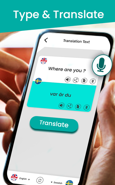Speak & translate language translator app has a very simple conversation interface. The voice to voice translation feature allows you to listen translated text automatically, you don't have to tap on speaker buttons again and again. Simply tap on mic and speak in one language to get desired translation in other language and share the translated text to the people they want to communicate. One person talks, and second person get translated voice of that language, then second person talks and first person get translated audio using voice translator. It might be served as voice interpreter translator.