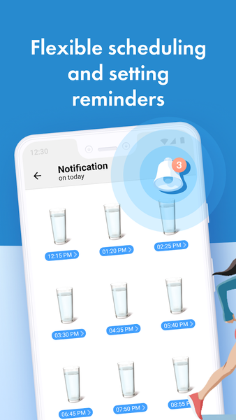 Reminders to drink water will always come right on time. Create your ideal schedule, select pleasant notification sounds to remember to drink water easily and happily.