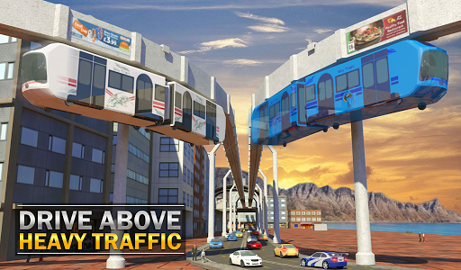 Witness new generation of rails on sky tracks while driving futuristic bullet train 2018. Play Elevated Train Driving Simulator 3D game and drive sky train simulator game above road traffic jams in massive city environment. Transport city passengers from one euro train station to other subway stations in sky train games 2018.