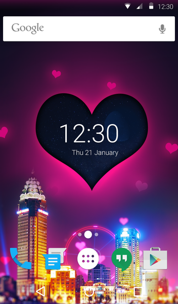 The custom call screen design is the final touch of our free theme Night Love Animated Keyboard + Live Wallpaper. Fans of moving backgrounds love this cool dynamic twist. Try this option for a full Android custom look!