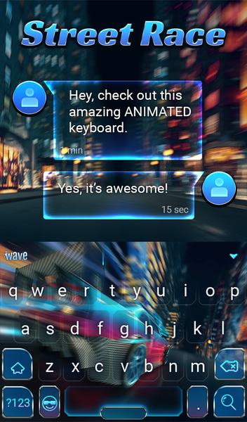 Street Race Animated Keyboard + Live Wallpaper is an awesome personalization app that gives your Android phone a stylish new look. Wave cool wallpapers and keyboards apps help revamp a device in just 3 steps:
