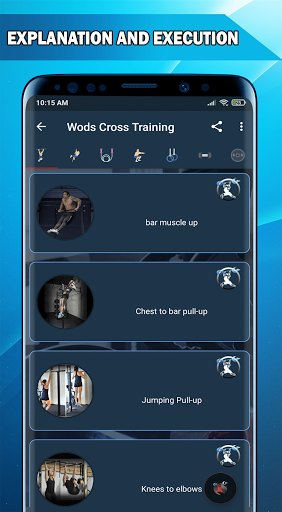 More than 100 exercises with which you can perform very varied routines. Each exercise has illustrative images and an explanatory video, so you can execute each exercise correctly. crossfit video