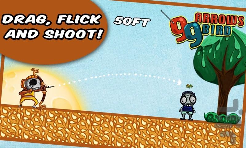 کشیدن، تکان دادن و ساقه پرنده با فلش خود را. ساقه پرنده سر انسان زنده با استفاده از یک تیر و کمان. هر موقعیت دور شما دورتر در نتیجه افزایش مشکل!