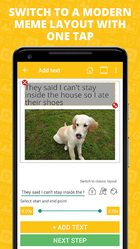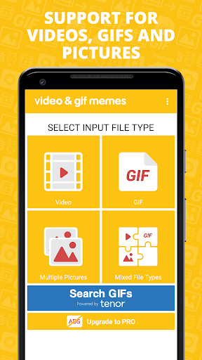 With Video & GIF Memes you are finally able to create Video and GIF memes on your mobile device. Simply select your input file, add text and create a Video or GIF. After you have created your Video or GIF meme simply save it or share it with your friends through your favorite apps.