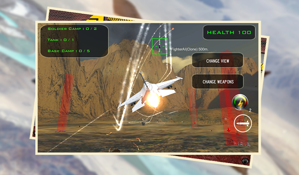 3. 3D environment that simulates the fighting arena full of furious fighter jets.