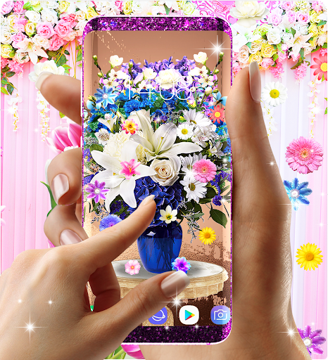 Flowers bouquet live wallpaper is a new beautiful app with various flowers images and live animations. You will find hd images with flowers elements and pink, purple or blue colors. Elements will fall over the screen. Create your own live wallpaper, choose your image and elements and personalize it as you wish, you can choose from those elements: diamonds, white and pink roses, sunflowers, pink lily, margaret, passiflora, summer or spring flowers.