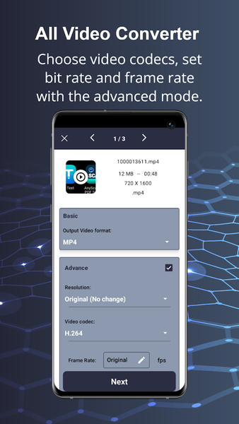 easily Convert Videos to any format, adjust video resolution to any pixel dimension, choose from various video codecs, customize bit rate and frame rate settings, and optimize conversion speed with an adjustable sliders. By implementing this advanced Mp4 Converter mode, our Video Converter becomes a powerful tool for precise control over video format, quality and size, making it compatibility with diverse devices and platforms, and an efficient Video Converter for professionals.