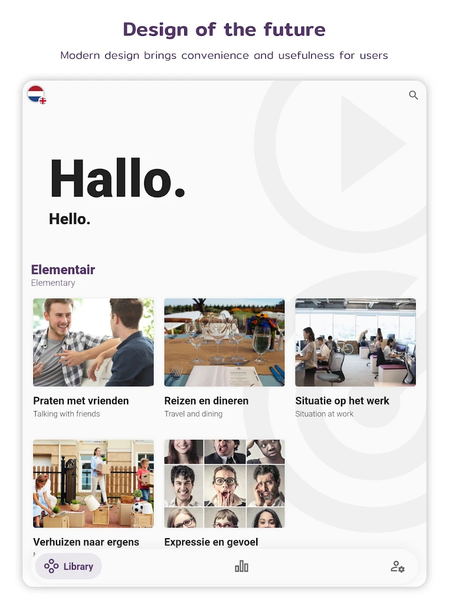 + Speaking and recording: listen and repeat after native Dutch speakers, then start recording and replay your speech later.