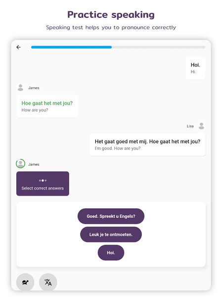 "Learn Dutch - Conversation Practice" (learning by talking Dutch app) is the best Dutch learning app that helps you can speak Dutch confidently and fluently.