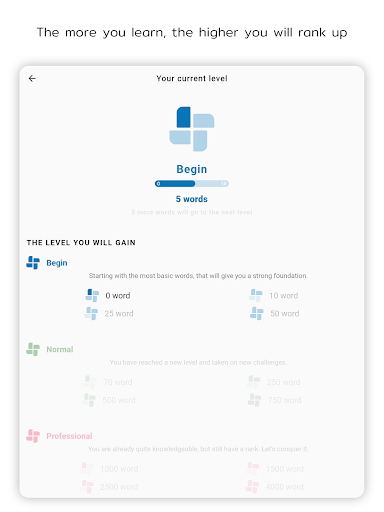 The app is simple and all you need to do is to relax your mind about vocabulary 15 minutes a day. Why 15 minutes? 15 minutes for you to build a routine, to completely relax your brain and memorize natural vocabulary. Of course, it does not rule out the possibility that you have better ability and you can completely adjust the length of the lesson according to your ability.