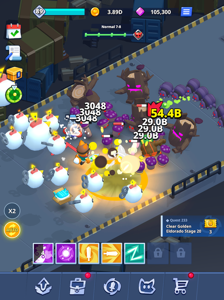 The game's idle mechanics ensure that your hero keeps progressing even when you're away, allowing you to return to bountiful rewards.