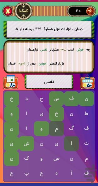 . بخش بازی با اشعار، جهت سرگرمی و نیز کمک به حفظ سروده ها