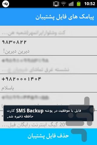بعد از این با نصب این برنامه میتونی خیلی راحت و فقط با یه کلیک از کل پیام های ارسالی و دریافتی ات پشتیبان(بکاپ) بگیری تا هر وقت بهشون نیاز پیدا کردی بتونی راحت و دوباره با یه کلیک اونا رو برگردونی و ازشون استفاده کنی...