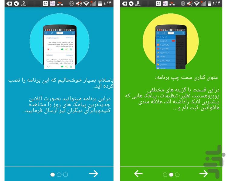 برنامه ای کم حجم وبسیار زیبا باطراحی متفاوت وهمچنین بروزبودن برنامه ، قابلیت عضو شدن دربرنامه وهمچنین ارسال پیامک ، و... این برنامه را از برنامه های سایر متمایز میکند