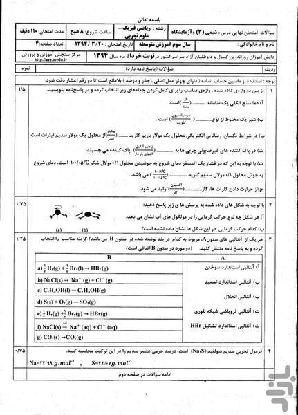بانک سوالات امتحان نهایی سوم دبیرستان( تجربی )