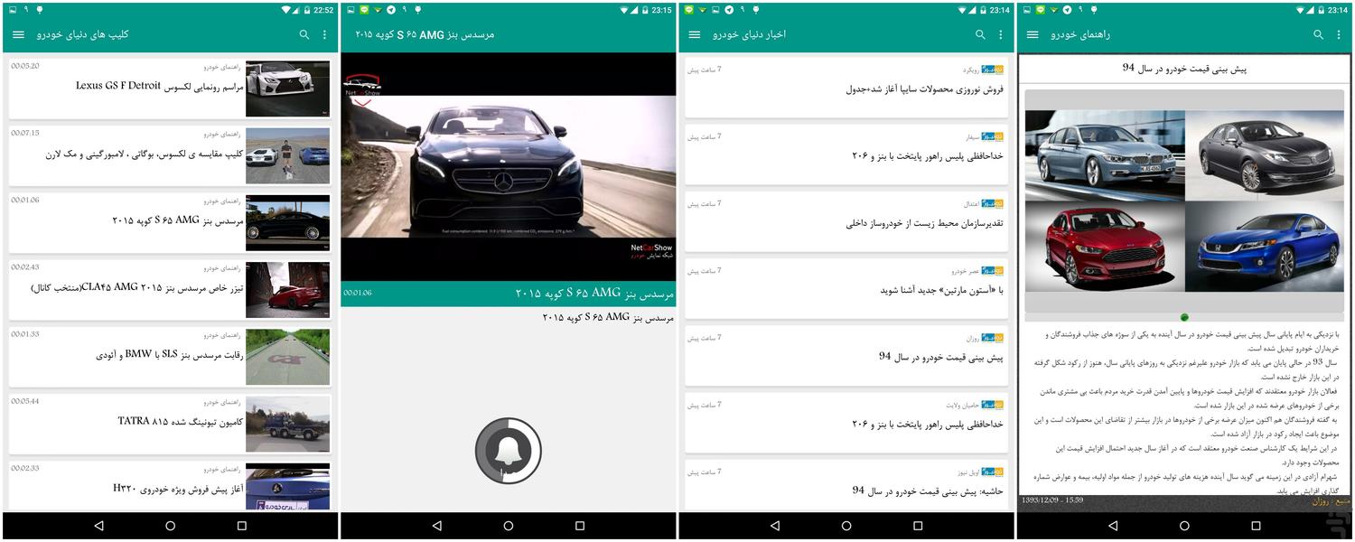 بخش گالری خودروها که گلچینی از خودروها انتخاب و عکس های آن ها در قالب زیبا ارایه شده است که امکان دانلود و شیر کردن و ثبت برای پس زمینه دستگاه تعبیه شده است.