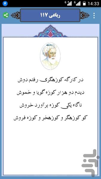 این مجموعه شامل کلیه ی رباعیات خیام فیلسوف، ریاضیدان، ستارهشناس و رباعی سرای ایرانی در دوره سلجوقی می باشد. که صدو هفتادو هفت رباعی زیبا و شیرین این شاعر گرانقدر را در برنامه به نمایش گذلشته ایم.