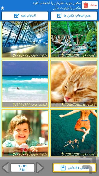 امکان پیدا کردن عکس های حذف شده براساس کیفیت آنها ( کیفیت پایین ، متوسط ، خوب ، عالی)