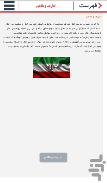 نرم افزار دوره آموزشی روابط بین المللی و اصول آن در علوم سیاسی یکی از مجموعه نرم افزارهای رایگان آموزشی ارائه شده توسط مرکز توسعه آموزش های مجازی پارس می باشد، این مرکز با اخذ مجوزات لازم ، برگزار کننده آموزش های مناسب با بستر الکترونیکی در بیش از 250 دوره آموزشی در رشته های مدیریت ، کامپیوتر، کشاورزی دامپروری و شیلات ، روانشناسی و ... در خدمت هموطنان و فارسی زبانان جهان می باشد. این نرم افزار حاوی 30 % از محتوای کامل آموزشی می باشد که در صورت تمایل می توانید با مراجعه به وب سایت مرکز به آدرس www.elearnpars.org و دریافت بسته کامل و آموزش ، از گواهینامه های معتبر داخلی و بین المللی پایان دوره، اعطایی از مرکز بهره ببرید.