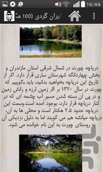 ما تو این برنامه 100 مکان دیدنی تاریخی و غیرتاریخی ( از قلعه ها و دژها و موزه ها و کاخ ها گرفته تا آبشارها و کوه ها و دشت ها و دریاچه ها) .. از تمامی استان های کشورمون قرار دادیم تا شما برای مسافرت و تفریح به این مکان ها برین و از این نقاط دیدن کنین..برای سهولت رفتن به این نقاط ، آدرس این مکان ها هم قرار داده شده..