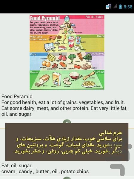 ● بخش عکس فوری : شامل تصویر همراه با تلفظ صوتی و ترجمه فارسی. با هدف تقویت واژگان بر اساس تصویر
