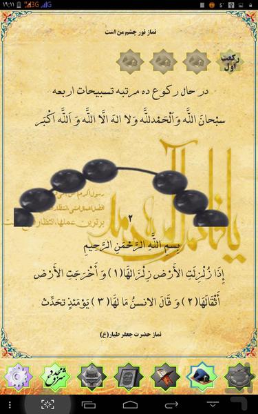 نمازهای روایت شده از ائمه اطهار علیهم السلام، مثل نماز امام زمان(عج) یا نماز جعفر طیار که ذکر خاصی بایستی به تعداد مشخص تکرار بشود یا سوره های خاصی باید در این نمازها خوانده شود. در این بخش، ابتدا توضیحات نماز داده میشود و میتوانید با زدن دکمه اقامه نماز، نماز را با کمک این نرم افزار اقامه کنید. به این صورت که، با زدن دکمه اقامه نماز تعداد و متن ذکر نمایش داده میشود سپس میتوانید اذکار را با لمس صفحه یا زدن دکمه های کم و زیاد صدا قرائت کنید و بعد از اتمام با لرزش به شما اطلاع داده میشود که تعداد مشخص شده به اتمام رسیده است و وارد ذکر بعدی میشوید و تا پایان نماز به همین صورت نرم افزار شما را راهنمایی میکند و بعد از اتمام نماز، دعای بعد از نماز نمایش داده میشود.