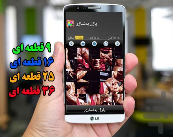 برنامه پازل بدنسازی شامل 147 مرحله در سطوح کلی 9 قطعه ای تا 36 قطعه ای می باشد که به ترتیب بعد از اجرای مراحل سطح افزایش می یابد، پازل بدنسازی جذابیت و هیجان بسیاری داشته و بعد از هر اجرای مرحله بر این جذابیت و هیجان افزوده می شود.