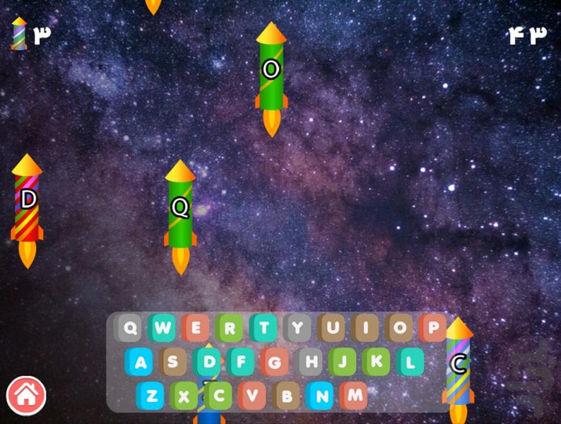 در این بازی حروف موشک باید تایپ بشن تا موشک را بترکونید.