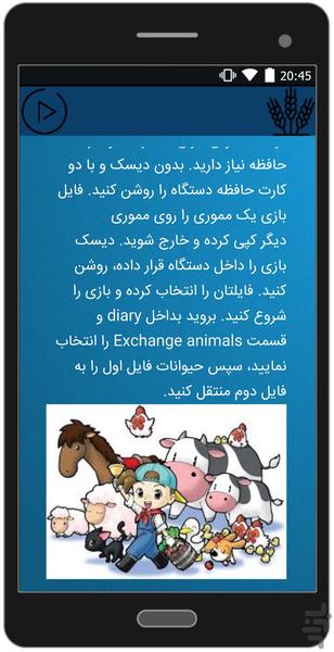 5 -معرفی ابزارآلات بازی(شامل آیتمها و ابزارآلات کشاورزی،مسایل مربوط به بزرگ کردن خانه و مرغداری و ...)
