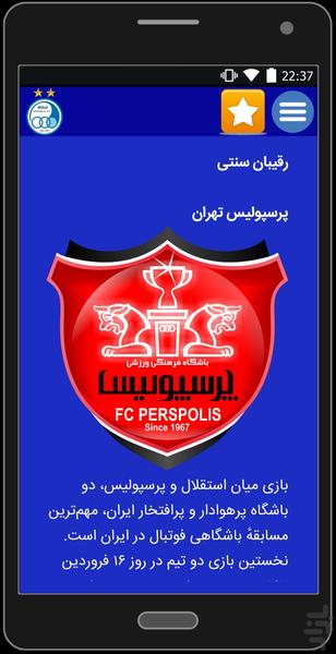 • میخوای تو کل کل کم نیاری ؟ حتما این برنامرو با ناچیز ترین قیمت دانلود کن و استفاده کن همه چیز رو راجب تیم محبوبت میفهمی ، ازتاریخچه و افتخارات گرفته تا عکسها و فیلمهای قدیمی ...