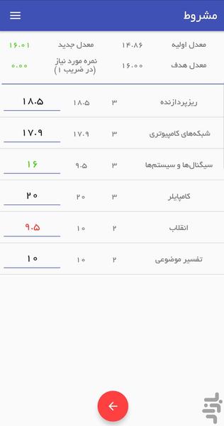 📚 انتخاب معدل هدف و بروزرسانی مجدد نمرهها برای رسیدن به آن