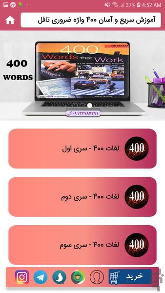 سری اول مجموعه لغات ۴۰۰ به صورت رایگان در اختیار شما عزیزان قرار داده شده است. در صورت تمایل می توانید سری کامل این مجموعه را خریداری نمایید.