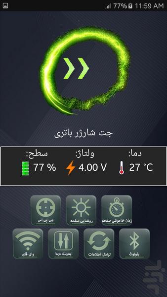 توجه:هنگامی که برنامه باز شد، باید دکمه ی شروع را بزنید تا برنامه فعال شود، وقتی برنامه فعال باشد شارژ شدن باتری هنگام خاموشی صفحه سریع شارژ خواهد شد.