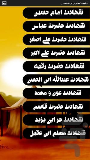 این برنامه نحوه زندگی و شهادت 10 تن از شهدای والا مقام کربلا را با متن بسیار جالب و روان و تصاویر بسیار زیبا و کاملا اختصاصی بازگو میکند