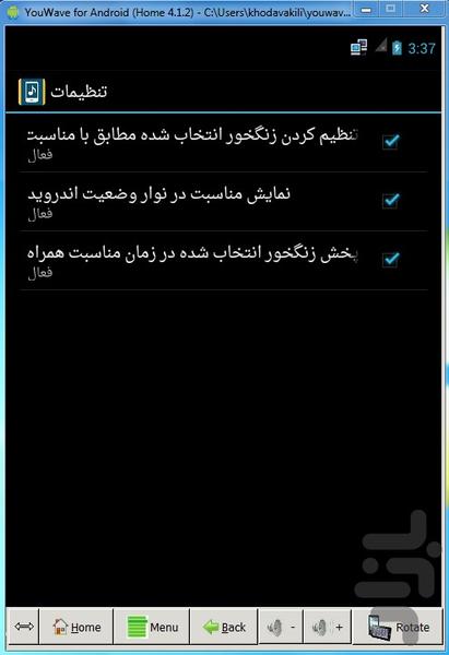این برنامه به شما اجازه میده تا توی تنظیمات بتونید اجازه تغییر زنگخور گوشی در مناسبات،پخش موزیک زنگخور،فقط هشدار دادن رو سفارشی کنید