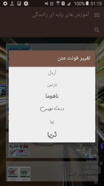 همه اموزش های رانندگی از کارهای ساده ای مثل گرفتن فرمان تا ..... دراین اپلیکیشن اورده شده. امیدوارم مطالبش مورد نیازتون باشه و بتونه مشکلاتتون رو حل کنه، اگه مطالب کافی نبود نظرتون رو بگید تا تو برنامه اضافه کنیم .... و برنامه رو تغییر بدیم رضایت شما آرزوی ماست...