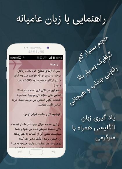 در این بازی یک سری کلمات انگلیسی (متناسب با سطح بازی) وجود دارند که باید معنی آنها را حدس بزنید!