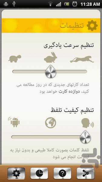 - در کارتهای جدید علامت تیک به معنای یاد گرفتن کلمه و ترجمه آن است و علامت دابل تیک به معنای بلد بودن آنها. بنابراین با انتخاب دابل تیک کلمه از روند یادگیری حذف و به آموخته شده ها اضافه می شود.