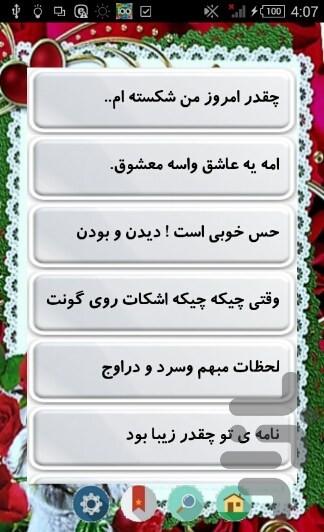 این برنامه شامل مجموعه ای از نامه های عاشقانه بلند می باشد که برای این منظور طراحی شده است. بخوانید و بدانید چه کلماتی رو باید بکار ببرید . با فراز و نشیب در نامه های عاشقانه اشنا بشید.